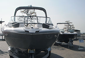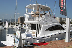 今年も併載された「関西中古艇フェア」では、各社選りすぐりの中古艇が所狭しと陸上展示された。