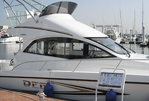 ヤマハコーナーでは、昨年関西で初お目見えとなった「イグザルト38コンバーチブル」「イグザルト36スポーツサルーン」の2隻の大型艇をはじめ「SC30ex」「SR-XX」「DFR-FB」「F.A.S.T.23」「YFR-FSR」の海上展示に加えて、陸上展示に「AR240Limited S」「AR192」という圧倒的なラインナップで展示を行っていた。