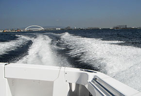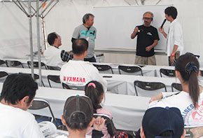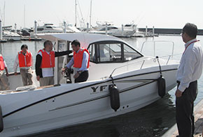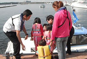 「体験操船」では、実際に免許試験艇を操縦できるということもあり、お子様連れのご家族に人気で、家族と海上散歩を楽しむほほえましい一コマも見られた。