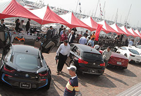 今年は「ボート・ヨットの海上・陸上展示」や「体験試乗」、「マリン用品展示即売」「マリンセミナー」などの他、プレミアムカーの展示・試乗コーナーも設けられ、さらに充実した「海と陸のコラボレーション」が実現し、関西最大規模のマリンショーが幕を開けた。