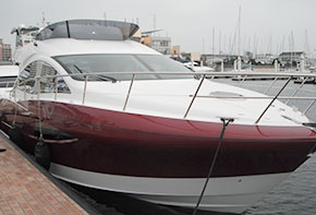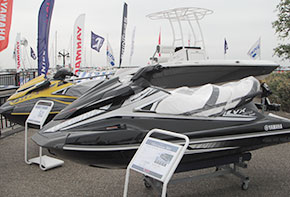 ヤマハコーナーには、ハルカラーのワインレッドが目を引く「EXULT 36 Sport Saloon X」やグッドデザイン賞を受賞した「SR320FB」をはじめ「DFR-36 EX」、「FR-29」「S-QUALO」「F.A.S.T.23」「242X-E」、今年デビューした「SR-X24」、中古艇の「MARQUIS 500SB」の海上展示に加えて、陸上展示にスポーツボート「190FSH Sport」、マリンジェットから「VXR」「VX Cruiser HO」という、存在感のあるラインナップで他社を圧倒し、来場者の注目を集めていた。