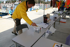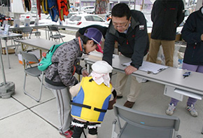 JEIS東北のブースでは、免許取得を希望されるお客様が熱心に説明を聞いている姿が見られたり、「マイライフジャケット」を着用したまま来場されるお子様連れの家族など、陸上ブースも一日中賑わいを見せていた。