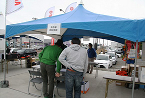 総合受付には「熊本地震への義援金受付BOX」も設置され、来場者だけでなくスタッフとしてご参加いただいた部品メーカーの方達も積極的に協力していた。