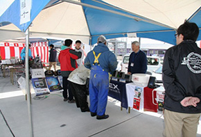 部品コーナーには、フェスタ来場者だけでなく、漁港内に係留保管されているオーナーの方や漁を終えた漁師さんなどが最新のGPS魚探・ソナー・レーダー・i-Pilotなどに興味深々。