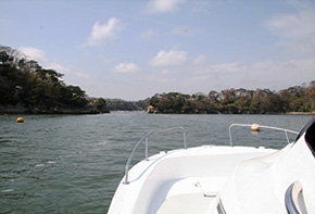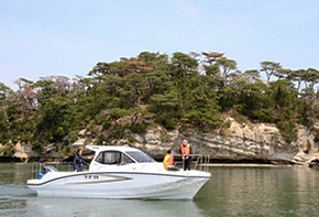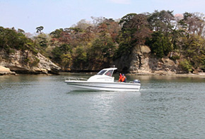 試乗は、観光船で賑わう松島湾の中を巡る約30分の風光明媚なショートクルージングコース。