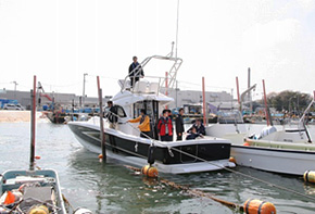 港の中には、ビジターでも利用できる給油施設・桟橋が設けられ、「ガソリン」「軽油」の他に「重油」まで給油できるとあって、この日も他の港・マリーナからプレジャーボートや水上バイク・漁船などが次々に給油に訪れていた。