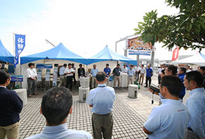 初日の10月7日11時30分から開会式が執り行われ、実行委員長のマリン事業協会・関東支部長挨拶、会場となった横浜ベイサイドマリーナ支配人挨拶、実行委員紹介に引き続き、出展ブースの紹介、出展各社の挨拶で3日間のボートフェアが開幕した。