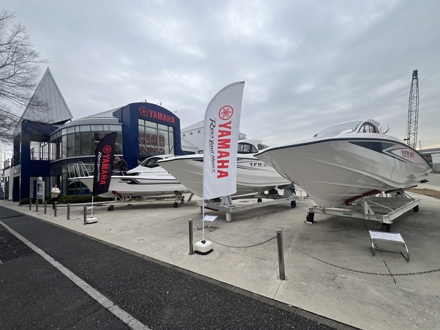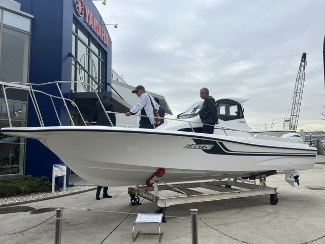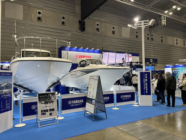 横浜ベイサイドマリーナに隣接するマリンセンター横浜では、高い戦闘力を予感させるロー&ワイドなフォルムにヤマハの持つ最新の技術を凝縮した「YFR-24EX」や、アングラーのリクエストに応えた人気のフィッシングボート「F.A.S.T.26EX 」などが並び、初日にも関わらず、早速乗船して熱心に船内を見入る来場者の姿が見られた。
