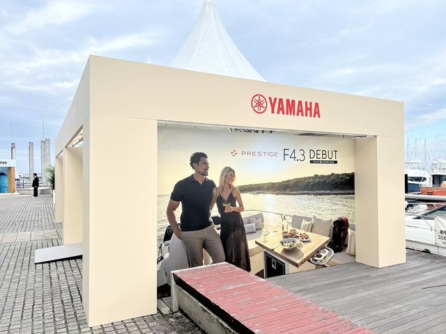 屋外フローティング会場では、ヤマハボートのフラッグシップ「PRESTIGE(プレステージ)」シリーズが圧巻の存在感を放っていた。