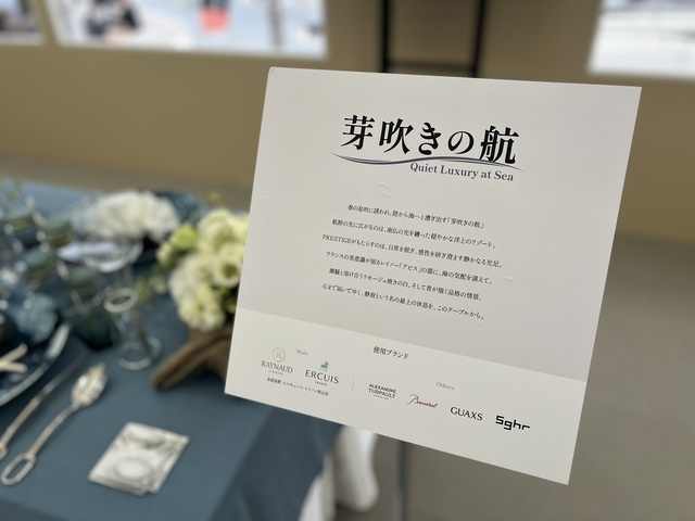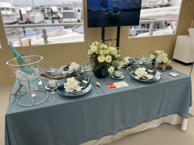 昨年好評だった各艇趣向をこらしたインテリアコーディネートは、さらに洗練されたおもてなしの雰囲気で来場者を出迎えていた。それぞれのテーマに合わせたハイクラスの食器やグラス、カトラリーをふんだんに使用して、昨年以上に豊かな空間と時間を演出していた。