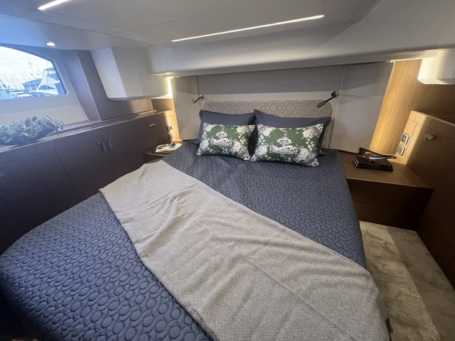 いずれの艇も高級感溢れるインテリアと解放感のあるフライングブリッジで、外洋でのクルージングやマリーナステイの贅沢なくつろぎの時間と空間を楽しむことができる。